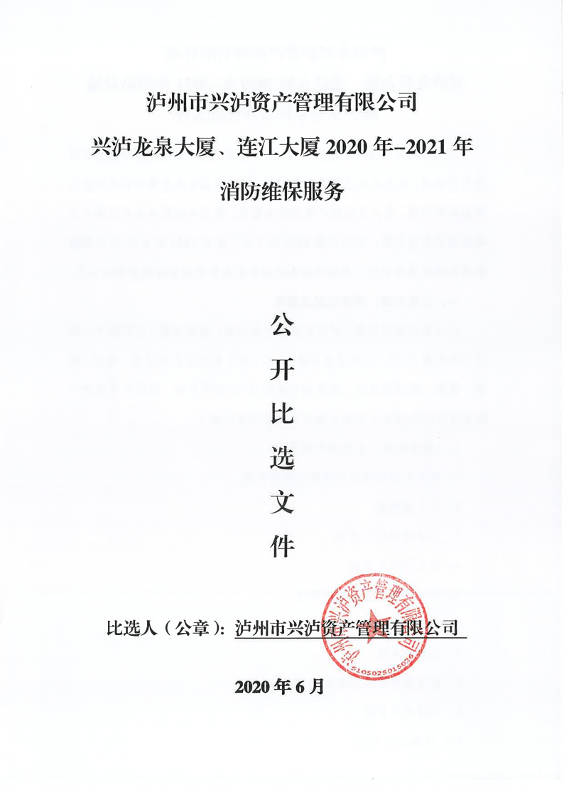 瀘州市興瀘資產管理有限公司興瀘龍泉大廈、連江大廈2020年-2021年消防維保服務公開比選文件