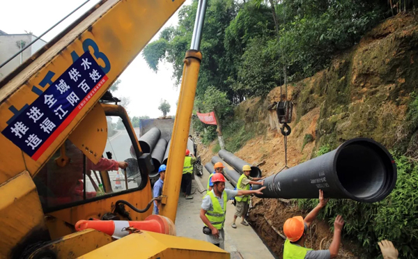 圖為江陽(yáng)區(qū)全域供水項(xiàng)目管道安裝現(xiàn)場(chǎng)