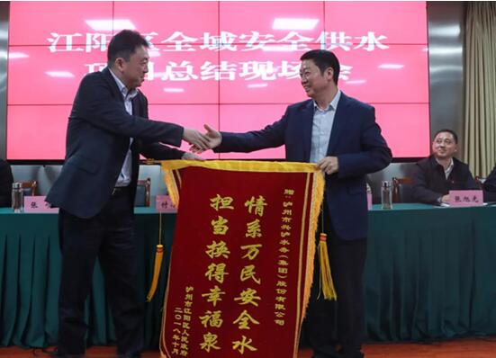 “情系萬(wàn)民安全水,擔(dān)當(dāng)換得幸福泉。”興瀘水務(wù)用兩年半的時(shí)間,向江陽(yáng)區(qū)委交出了滿意的答卷,也向34萬(wàn)江陽(yáng)村民奉上了滿意的成果。在10月24日舉行的江陽(yáng)區(qū)全域安全供水總結(jié)會(huì)上,興瀘水務(wù)集團(tuán)黨委書記、董事長(zhǎng)張歧從瀘州市副市長(zhǎng)、江陽(yáng)區(qū)委書記付小平手里接過(guò)一面鮮紅的錦旗。這既是江陽(yáng)區(qū)委對(duì)興瀘水務(wù)集團(tuán)工作成果的肯定,也是江陽(yáng)區(qū)34萬(wàn)村民共同的心聲!