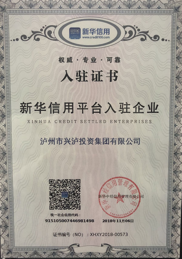 “新華信用平臺(tái)入駐企業(yè)”,這是興瀘集團(tuán)獲瀘州市“誠(chéng)信企業(yè)”、“四川省誠(chéng)信守法示范企業(yè)”、“四川省守合同重信用企業(yè)”稱號(hào)之后,在誠(chéng)信建設(shè)方面獲得的又一成果。