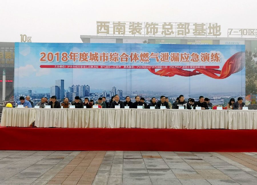為確保城市燃?xì)獍踩褂?,提高華潤興瀘燃?xì)夤咎幹贸鞘芯C合體燃?xì)庑孤┦鹿实膽?yīng)急反應(yīng)能力,12月20日上午,由瀘州市城市管理和行政執(zhí)法局,龍馬潭區(qū)人民政府主辦,瀘州華潤興瀘燃?xì)庥邢薰?,瀘州萬達(dá)廣場商業(yè)管理有限公司承辦的2018年度城市綜合體燃?xì)庑孤?yīng)急演練在瀘州萬達(dá)廣場舉行。瀘州市興瀘集團(tuán)、龍馬潭區(qū)消防大隊(duì)、龍馬潭區(qū)公安局、龍馬潭區(qū)交警大隊(duì)、龍馬潭區(qū)衛(wèi)計(jì)委相關(guān)領(lǐng)導(dǎo)出席并參與了此次應(yīng)急演練。