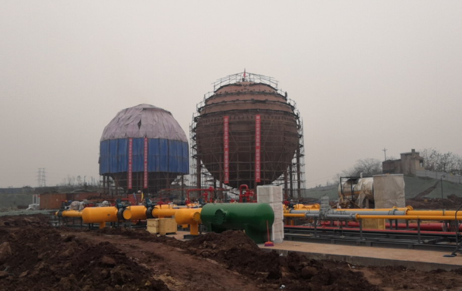 瀘州華潤(rùn)興瀘燃?xì)庥邢薰窘痣u灣儲(chǔ)配站項(xiàng)目球罐組裝完成