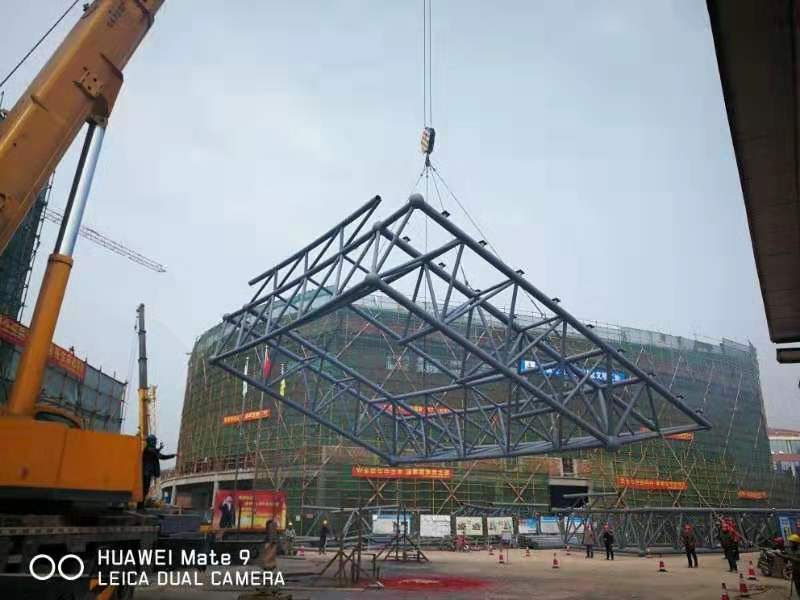 2019年3月11日上午11時(shí)36分,隨著200T大型起重機(jī)的轟鳴,由瀘州興瀘居泰建設(shè)有限公司建設(shè)的瀘職院Ⅱ期室內(nèi)體育館項(xiàng)目第一榀鋼結(jié)構(gòu)屋面桁架,于12時(shí)03分順利著落至設(shè)計(jì)點(diǎn)位。