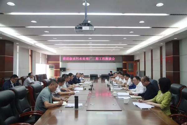 5月15日,敘永縣縣委書記陳景強率敘永縣縣委副書記鄭勇、敘永縣政府副縣長冉安健及相關(guān)部門負(fù)責(zé)人到興瀘水務(wù)集團會商加快推進敘永污水處理廠二期工程項目建設(shè)工作。興瀘水務(wù)集團黨委書記、董事長張歧,黨委副書記、總經(jīng)理廖星樾參加座談。