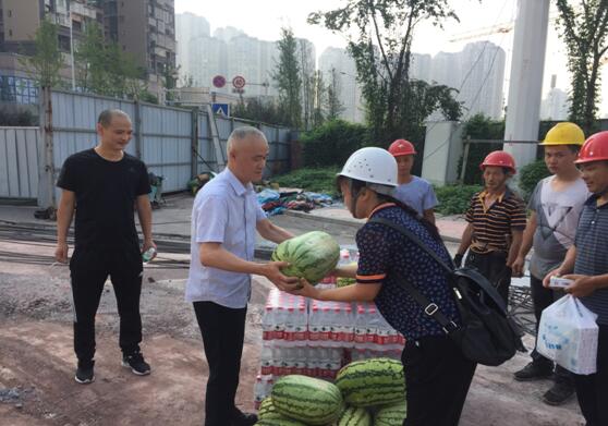 夏日炎炎送清涼 居泰甘露潤人心 作者:黃中貴 柳驥 來源:興瀘居泰 日期:2019-08-15 瀏覽次數(shù): 次 【字體:小 大】 夏日高溫持續(xù),施工現(xiàn)場酷暑難當,為了慰問奮戰(zhàn)在玉帶花園云躍街道路工程一線的工友們,8月13日上午,興瀘居泰房地產有限公司開展夏日“送清涼”活動,楊旭東副總代表興瀘居泰公司送上最誠摯的問候。 興瀘居泰公司為工友們準備了解暑的西瓜,清涼的礦泉水,以及夏日解暑藥品。楊旭東副總一邊分發(fā)物資,一邊強調:夏日施工,安全第一,要注意防暑降溫,合理安排作息時間,確保平平安安上班。實實在在的讓工友們感受到了“清涼“關懷。 【打印正文】