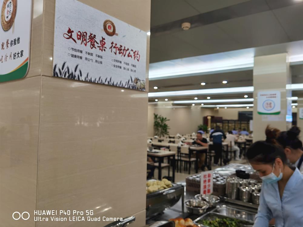 一是強化宣傳教育,“光盤”有氛圍。食堂內(nèi)部張貼文明用餐宣傳畫,餐盤回收處設立宣傳展架、安裝視頻監(jiān)控設備,LED顯示屏循環(huán)播放宣傳標語,營造節(jié)約光榮、浪費可恥的濃厚氛圍。