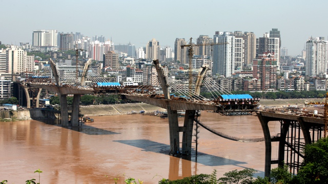 該段工程西接主橋,東接立交橋,系國窖長江大橋和東岸立交橋的銜接工程。位于三星街的西引橋除人民銀行裙樓處以外,濱江路至主干道段已全面進(jìn)入上部結(jié)構(gòu)施工階段,變更后的主干道跨線工程正在進(jìn)行墩柱施工,即將進(jìn)入箱梁施工。此外,國窖長江大橋主橋已完成83%箱梁砼澆筑,預(yù)計在10月底完成西岸和東岸的邊跨合攏,力爭在11月底完成中跨合攏。